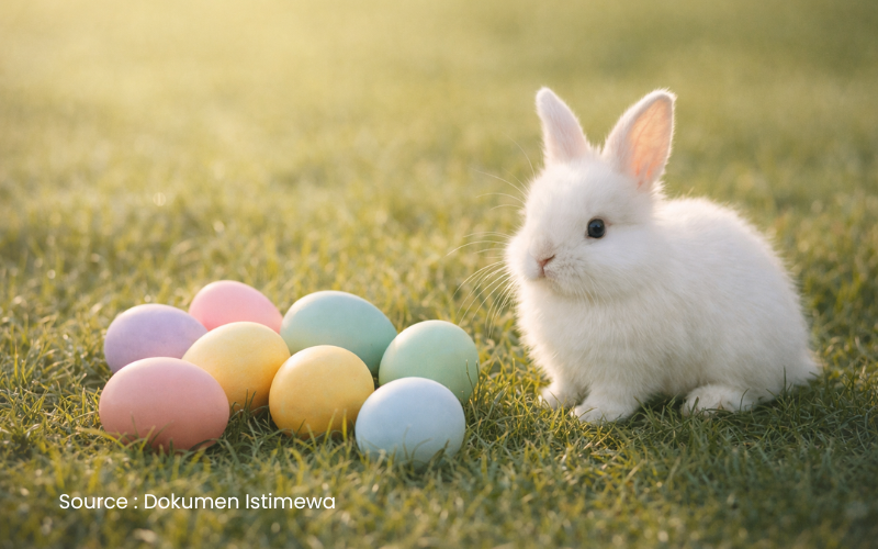 Kadang kita melihat telur dan kelinci sebagai hiasan saja. Tapi sebenarnya di balik simbol-simbol itu ada satu pesan yang sangat sederhana: selalu ada kehidupan baru, selalu ada harapan baru, dan selalu ada kesempatan untuk memulai lagi.