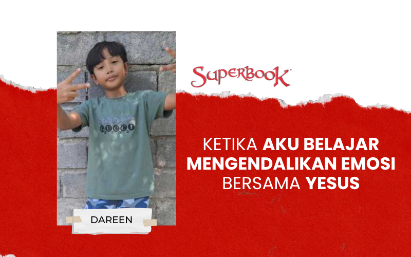 Sejak ikut kelas karakter dan nonton Superbook, aku mulai berubah. Sekarang kalau aku marah, aku ingat Yesus dulu. Aku berhenti sebentar, terus aku berdoa. Biasanya aku bilang, “Tuhan Yesus, tolong aku supaya gak marah.” Aneh tapi nyata, setelah berdoa, hatiku jadi tenang.